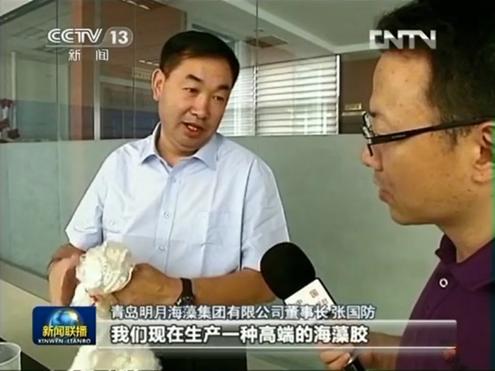 2013年9月19日(中秋節(jié)),CCTV-1《新聞聯(lián)播》頭條播發(fā)【經(jīng)濟轉(zhuǎn)型進行時】打造經(jīng)濟增長的藍(lán)色發(fā)動機,報道青島明月海藻集團以科技創(chuàng)新引領(lǐng)藍(lán)色經(jīng)濟實現(xiàn)轉(zhuǎn)型升級。
